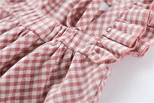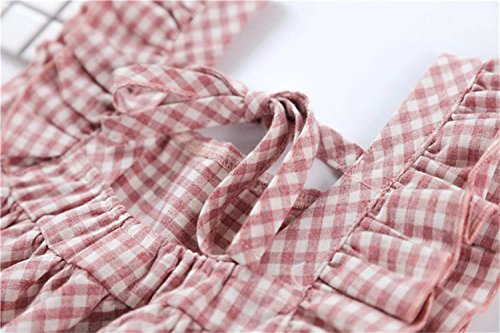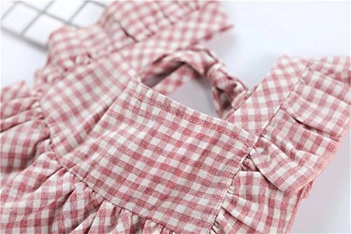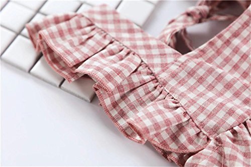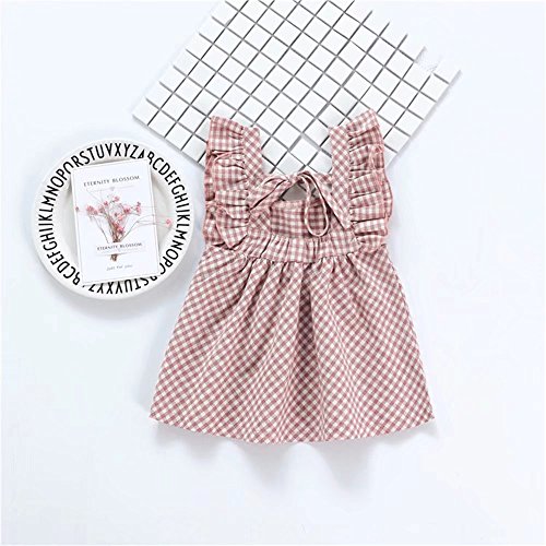夏ベイビー服 女の子ワンピース 90cm 袖なし Pojour キッズ用かわいいチェック柄のプリーツホルタードレス 子供ギフト 綿 通気
