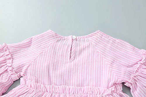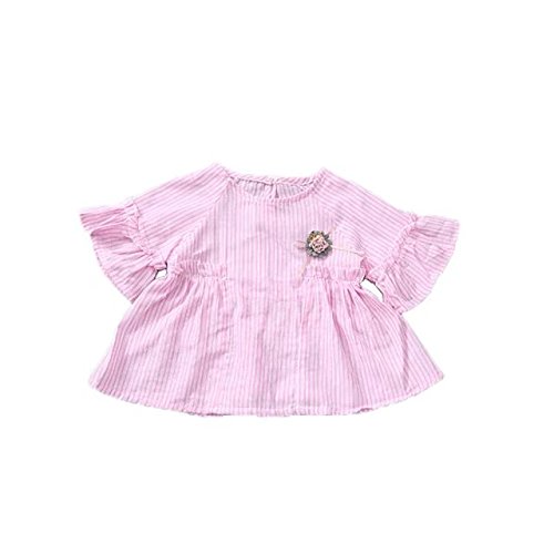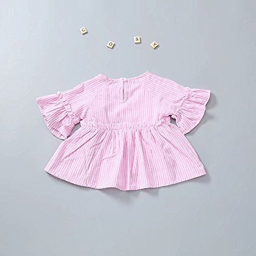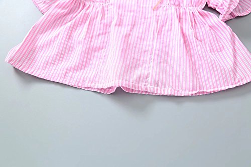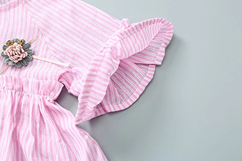 ベイビー服 ワンピース 夏女の子半袖ストライプドレス Pojour 1-6歳子供かわいいスカート 綿 通気 ピンク(80cm)