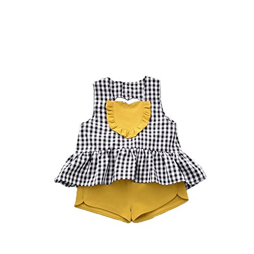 夏ベイビー服 女の子Tシャツ+パンツ Pojour 1-6歳子供かわいいキャミソール2セット 綿 通気 黄色(90cm)