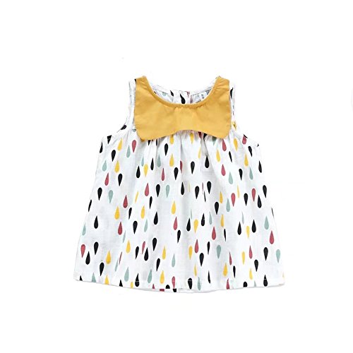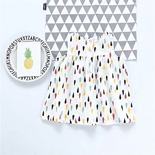 夏ベイビー服 女の子ワンピース 90cm 袖なし Pojour キッズ用かわいい雨粒ドレス 子供ギフト 綿 通気