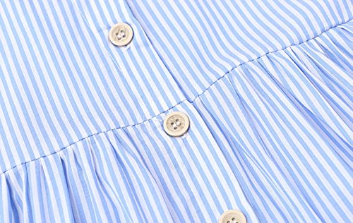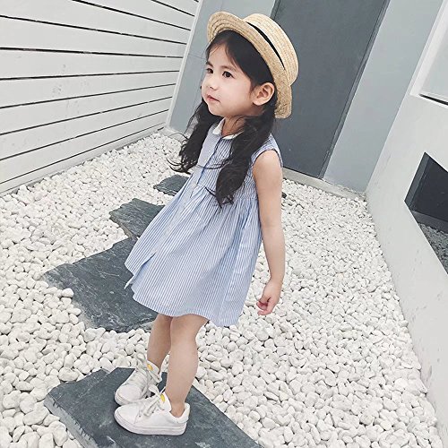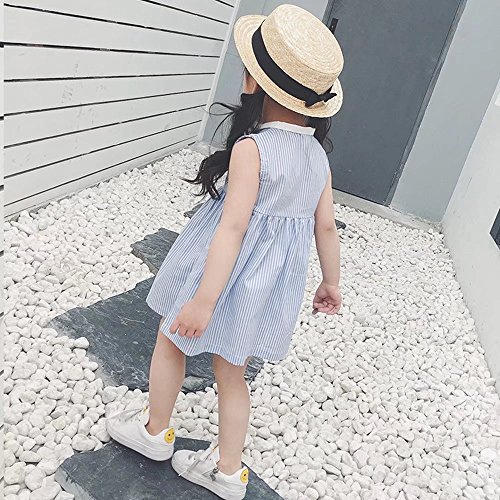 夏ベイビー服 女の子ワンピース 110cm 青 Pojour ガールズドレス キッズ用かわいいファッション縦縞ドレス 子供ギフト 綿 通気