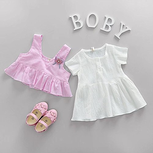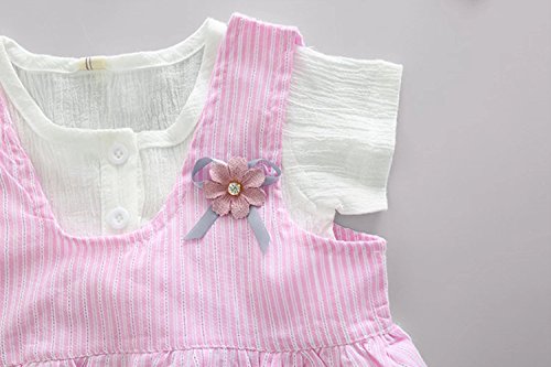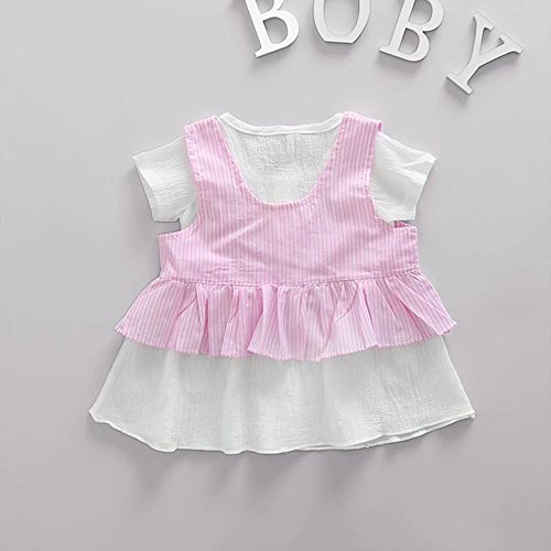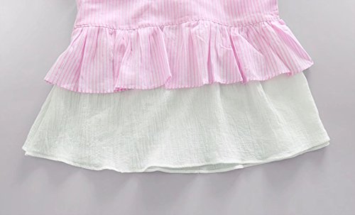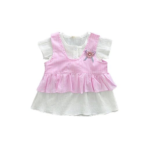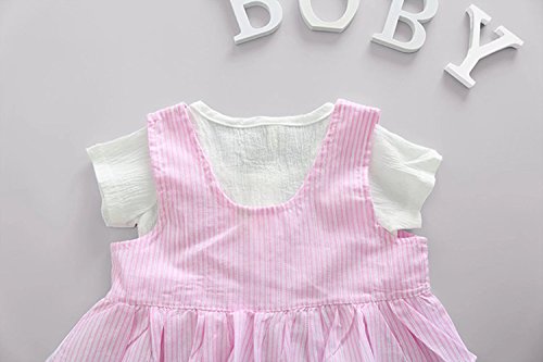 ベイビー服 ワンピース 夏女の子ドレス Pojour 1-6歳子供かわいいスカート2セット 綿 通気 ピンク(80cm)