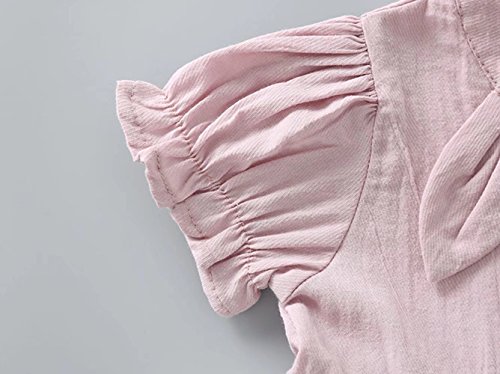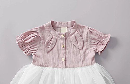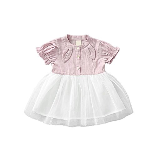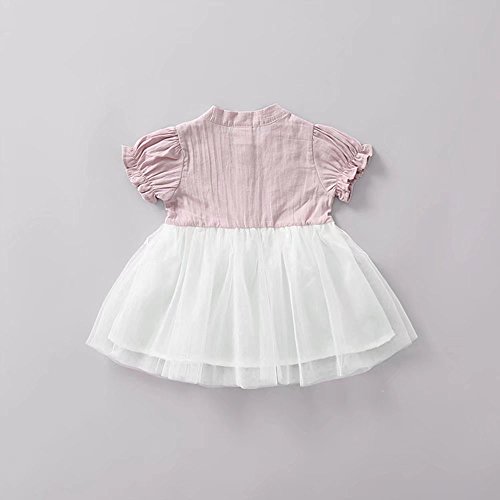 夏ベイビー服 女の子ワンピース Pojour 1-6歳キッズ用かわいいチュールカットソードレス 子供ギフト 綿 通気 ピンク(90cm)