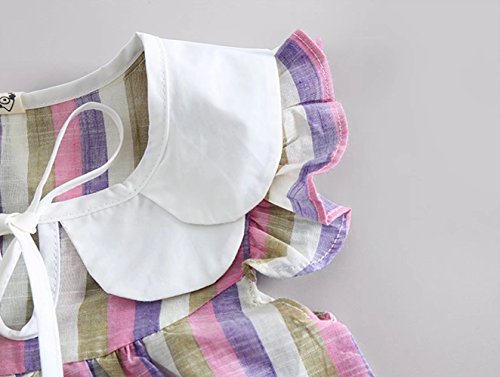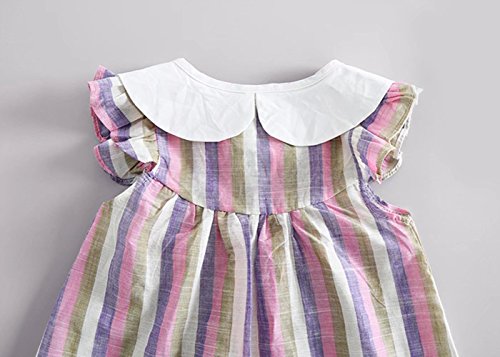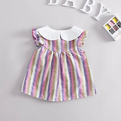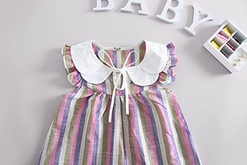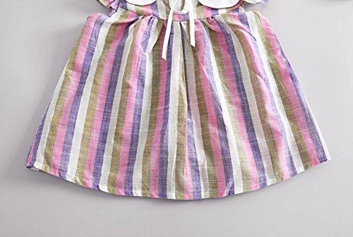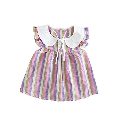 ベイビー服 ワンピース 夏女の子ストライプドレス Pojour 1-6歳子供かわいいスカート 綿 通気 ピンク(90cm)