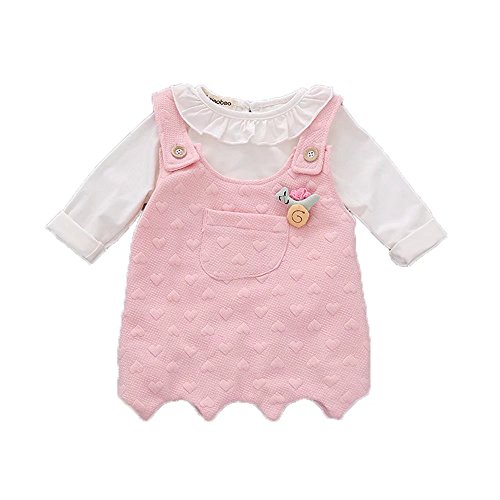 ベビー服 子供服 女の子 ワンピース Pojour ドレス 長袖 秋冬 可愛いカバーオール オシャレ 通園 発表会 旅行 記念日 プレゼント 2セット ピンク