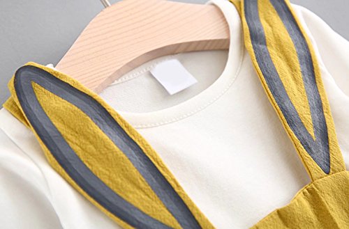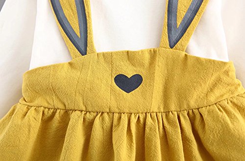 ベビー服 子供服 女の子 ワンピース Pojour ドレス 長袖 秋冬 可愛いウサギ耳 オシャレ 通園 発表会 旅行 記念日 プレゼント 2セット 黄色