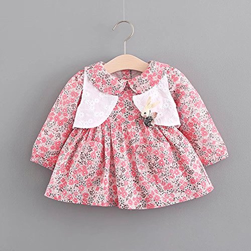 ベビー服ワンピース 子供服 女の子 Pojour 長袖ドレス 可愛い花柄 秋冬 オシャレ 通園 発表会 旅行 記念日 プレゼント