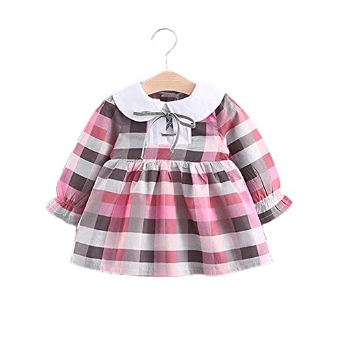 ベビー服 子供服 女の子ワンピース Pojour 長袖ドレス 可愛いグリッドリボン 秋冬 オシャレ 通園 発表会 旅行 記念日 プレゼント ピンク