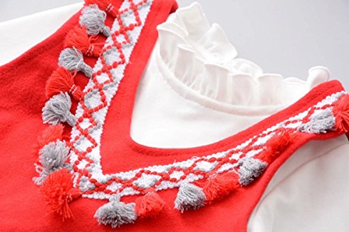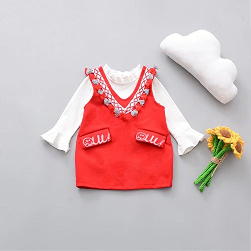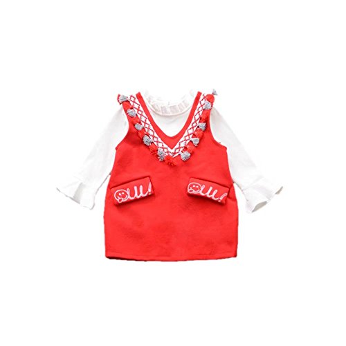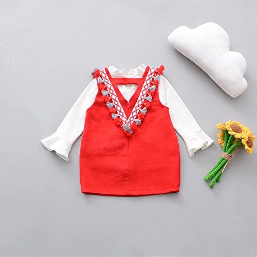 ベビー服 子供服 女の子ワンピース Pojour 長袖ドレス 可愛いつりスカート 秋冬2セット オシャレ 通園 発表会 旅行 記念日 プレゼント 赤