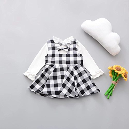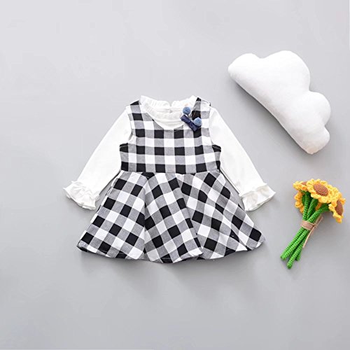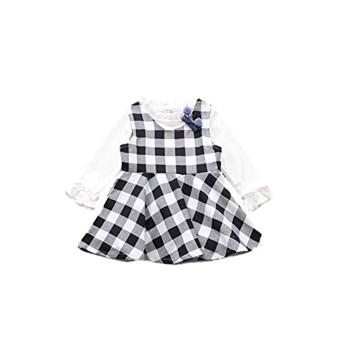 ベビー服 子供服 女の子ワンピース Pojour 長袖ドレス 可愛いグリッドワンピース 秋冬ストラップスカート オシャレ 通園 発表会 旅行 記念日 プレゼント 白