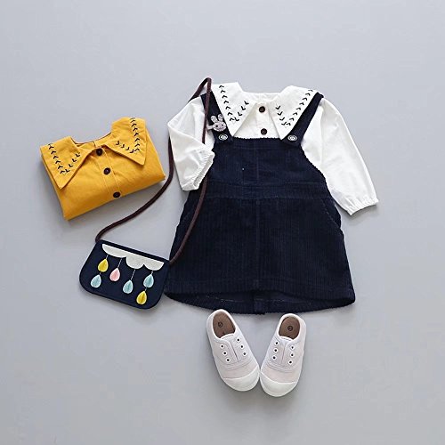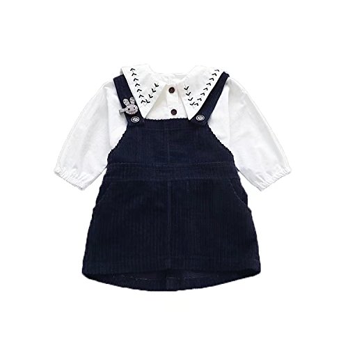 ベビー服 子供服 女の子ワンピース Pojour 可愛いつりスカート 長袖ドレス オシャレ2セット 秋 通園 発表会 旅行 記念日 プレゼント 白