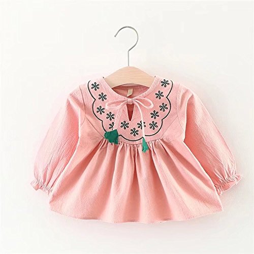 ベビー服 子供服 女の子ワンピース Pojour 長袖ドレス 可愛いスカート オシャレ 秋 通園 発表会 旅行 記念日 プレゼント ピンク