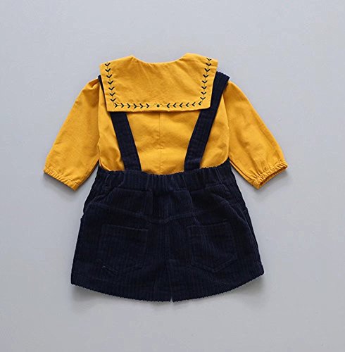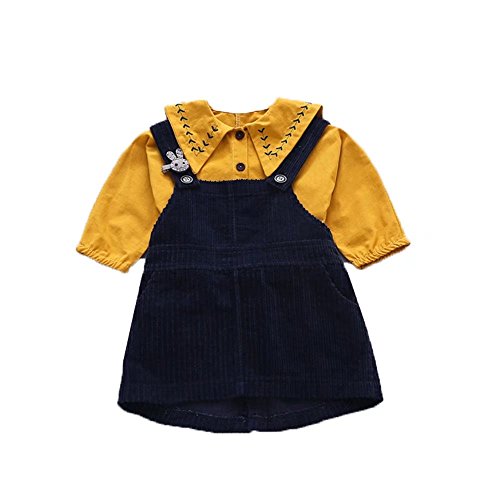 ベビー服 子供服 女の子ワンピース Pojour 可愛いつりスカート 長袖ドレス オシャレ2セット 秋 通園 発表会 旅行 記念日 プレゼント 黄色
