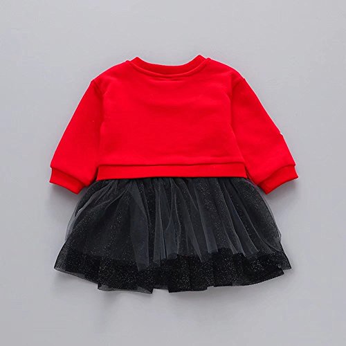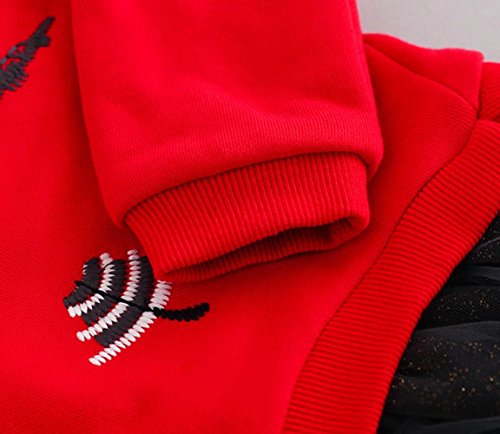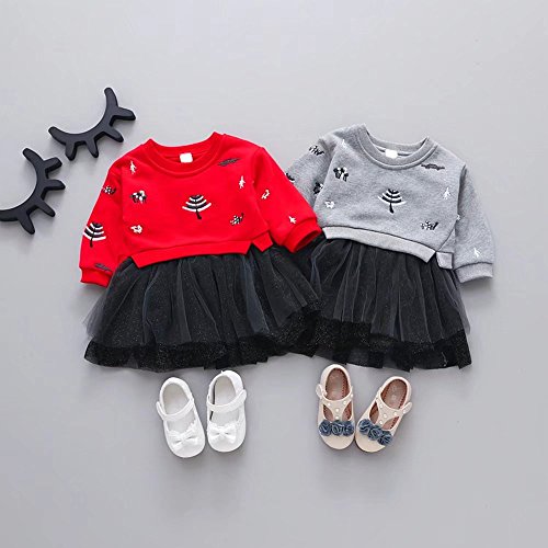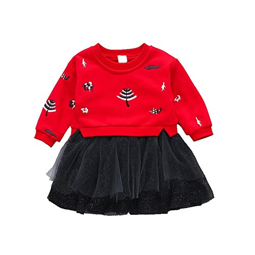 ベビー服 子供服 女の子ワンピース Pojour 可愛い木 偽2セットスカート 長袖ドレス オシャレ 秋 通園 発表会 旅行 記念日 プレゼント 赤