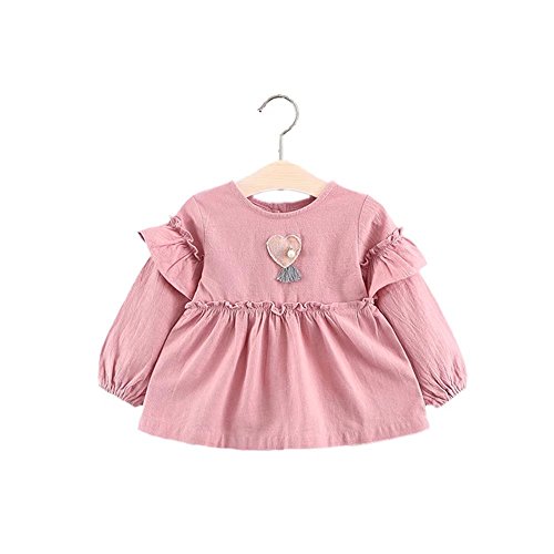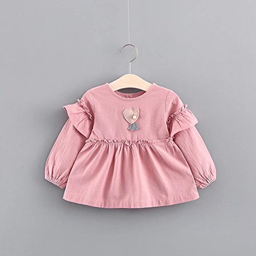 ベビー服 女の子ワンピース 子供服 Pojour 可愛いハートスカート 長袖ドレス オシャレ 秋 綿 通園 発表会 旅行 記念日 プレゼント ピンク