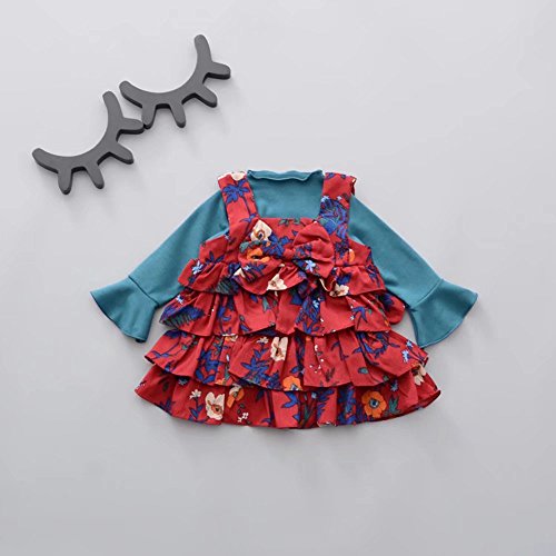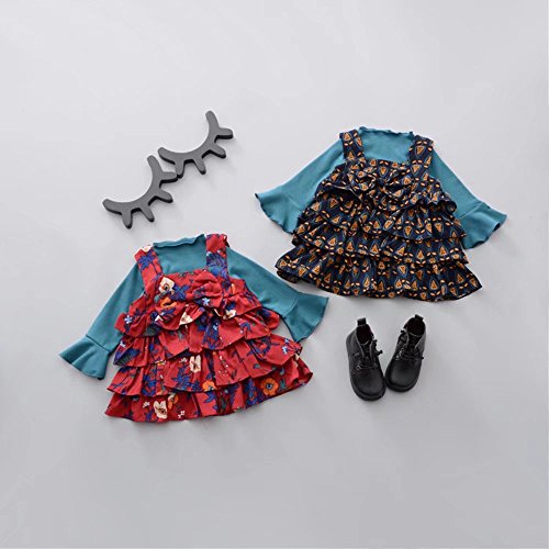 ベビー服 女の子ワンピース 子供服 Pojour 可愛いスカート長袖ドレス オシャレ 秋 2セット 綿 通園 発表会 旅行 記念日 プレゼント 赤
