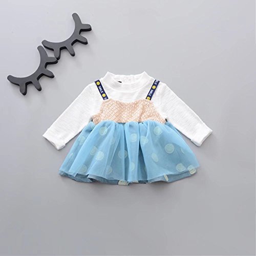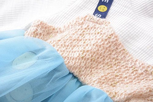 ベビー服 女の子ワンピース 子供服 Pojour 可愛い笑顔セーター チュールスカート長袖ドレス オシャレ 秋 綿 通園 発表会 旅行 記念日 プレゼント 青