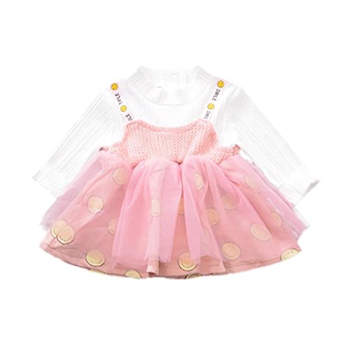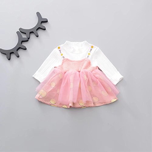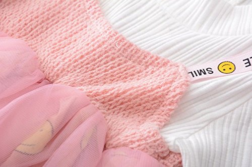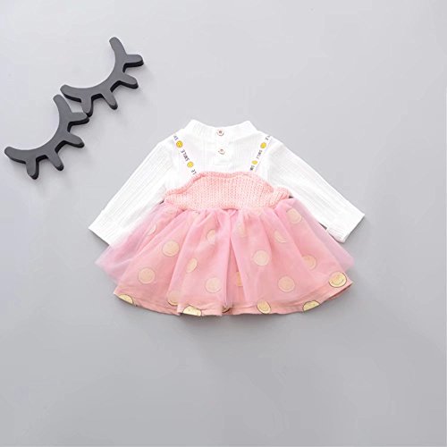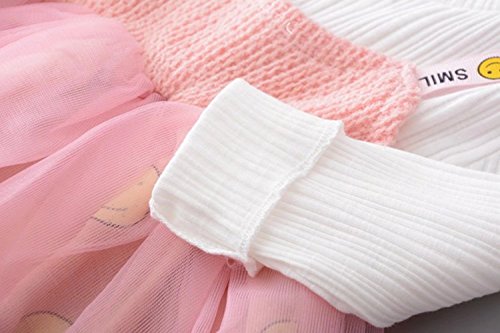 ベビー服 女の子ワンピース 子供服 Pojour 可愛い笑顔セーター チュールスカート長袖ドレス オシャレ 秋 綿 通園 発表会 旅行 記念日 プレゼント ピンク