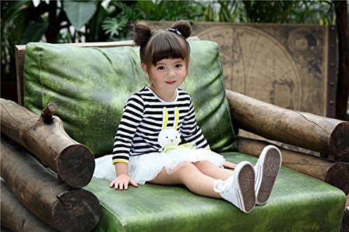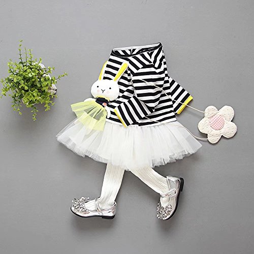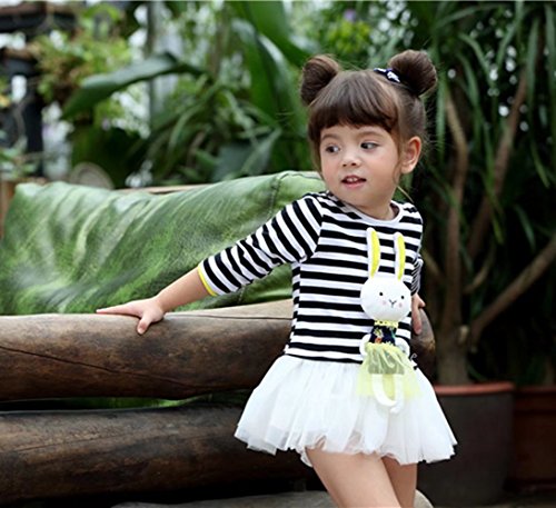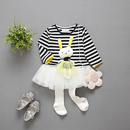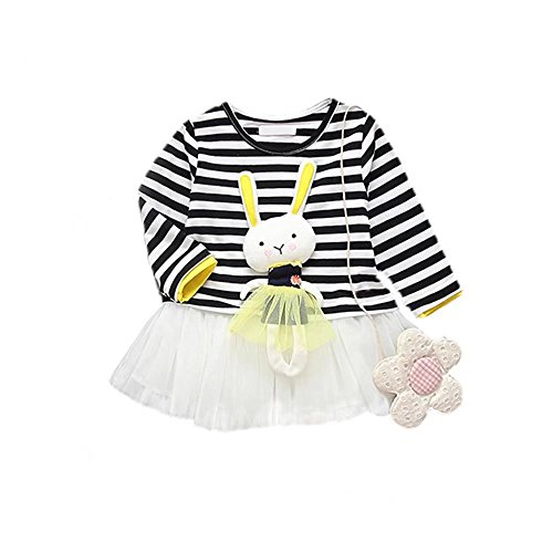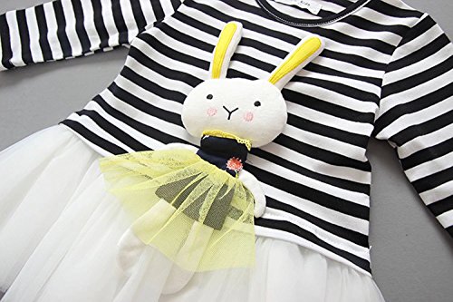 子供服 女の子ワンピース ベビー服 Pojour 可愛いストライプスカート 長袖ウサギドレス オシャレ 秋 綿 通園 発表会 旅行 記念日 プレゼント