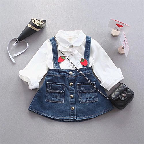 子供服 女の子ワンピース ベビー服 Pojour 可愛いデニムスカート 長袖シャツ ドレス オシャレ 秋 綿 通園 発表会 旅行 記念日 プレゼント