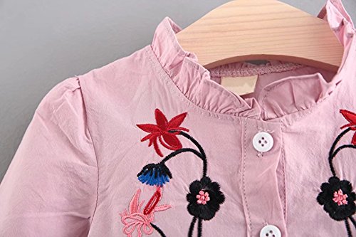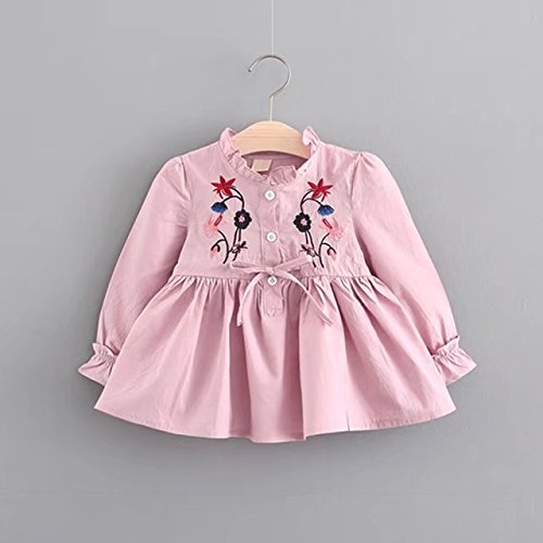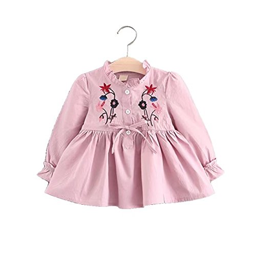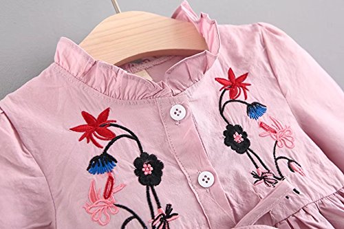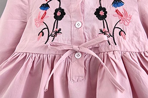 子供服 女の子ワンピース ベビー服 Pojour 刺繍 可愛い花スカート 長袖ドレス オシャレ 冬秋 綿 通園 発表会 旅行 記念日 プレゼント ピンク