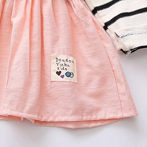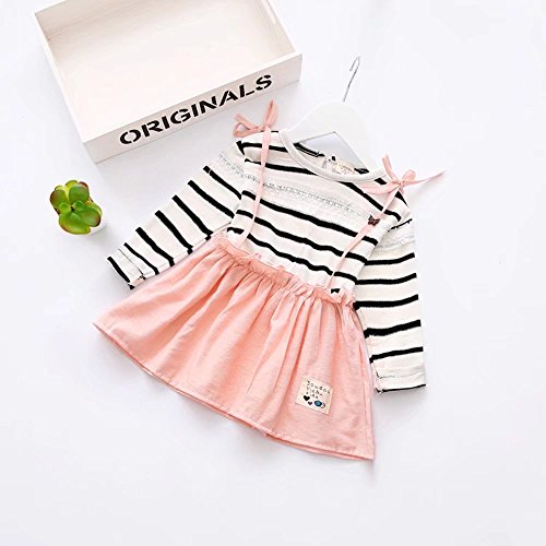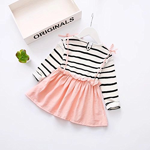 子供服 女の子ワンピース ベビー服 Pojour 偽2セット 可愛いストライプスカート 長袖ブラウス ドレス オシャレ 冬秋 綿 通園 発表会 旅行 記念日 プレゼント