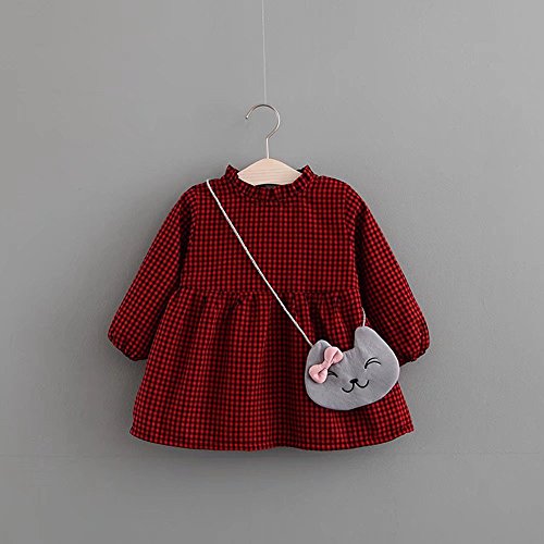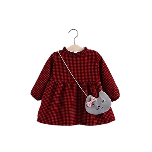 ベビー服 女の子ワンピース 子供服 Pojour 可愛いチェック柄スカート 猫バッグ付き スカート 裏毛 長袖ドレス オシャレ 秋 綿 通園 発表会 旅行 記念日 プレゼント