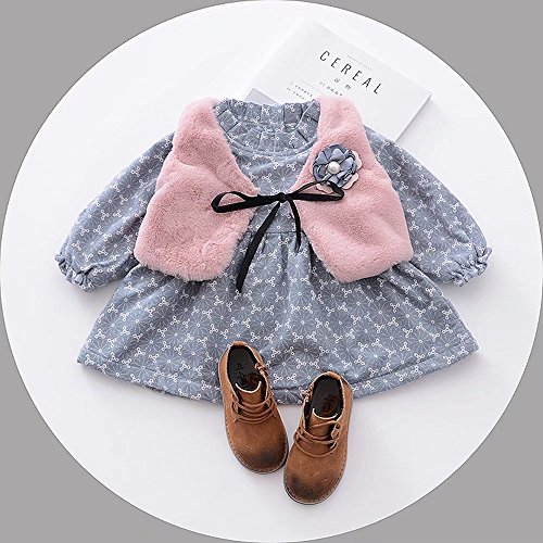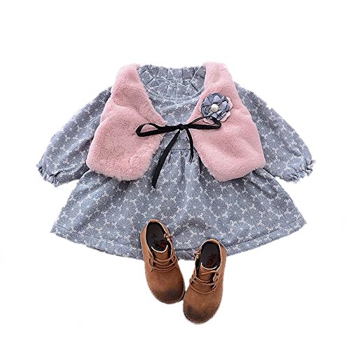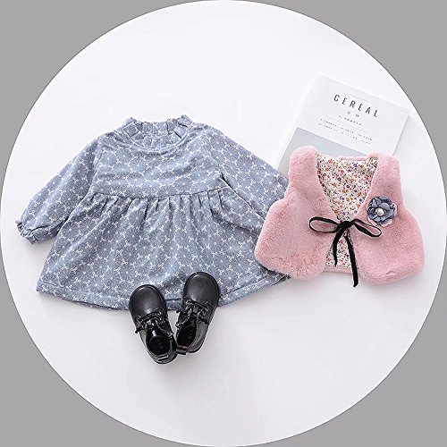 ベビー服 女の子ワンピース 子供服 Pojour 冬秋 防寒 厚いスカート 可愛い小さなベスト付き 裏毛 長袖ドレス オシャレ 秋 綿 通園 発表会 旅行 記念日 プレゼント グレー
