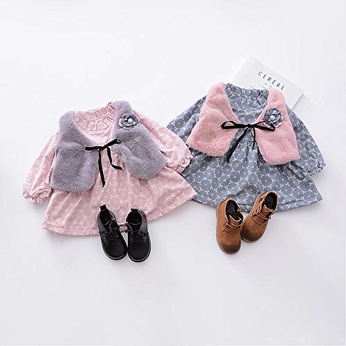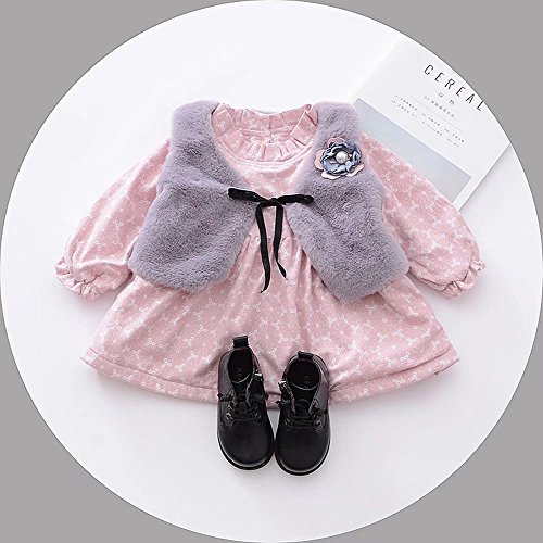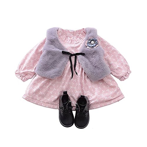 ベビー服 女の子ワンピース 子供服 Pojour 冬秋 防寒 厚いスカート 可愛い小さなベスト付き 裏毛 長袖ドレス オシャレ 秋 綿 通園 発表会 旅行 記念日 プレゼント ピンク