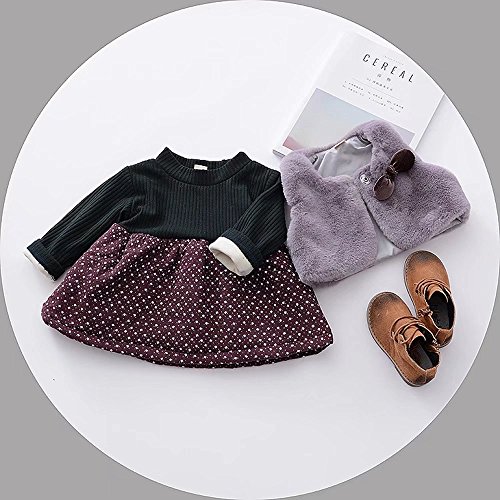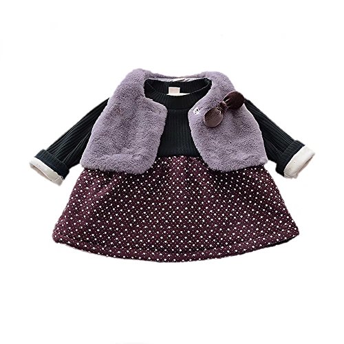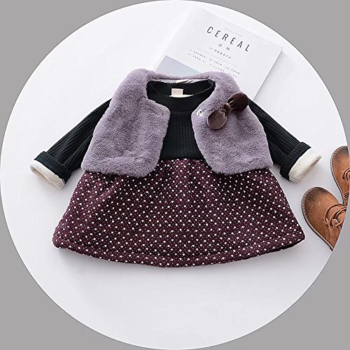 ベビー服 女の子ワンピース 子供服 Pojour 冬秋 防寒 厚いカットソードレス ドットワンピース 可愛い小さなベスト付き 裏毛 長袖 オシャレ 綿 通園 発表会 旅行 記念日 プレゼント グレー