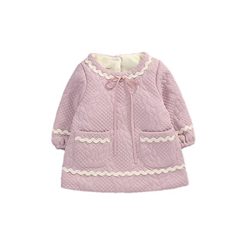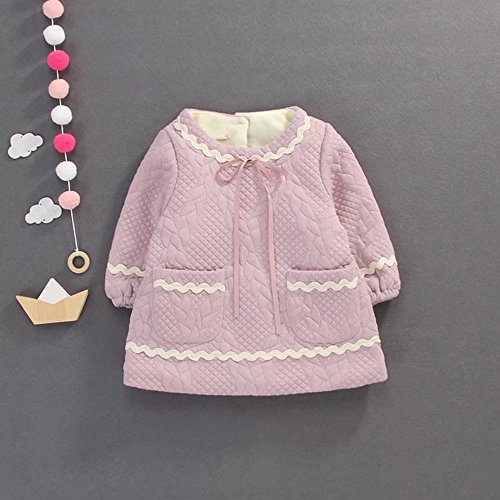 ベビー服 女の子ワンピース 子供服 Pojour 冬秋 防寒 厚手スカート 可愛いリボンワンピース 長袖ドレス オシャレ 秋 綿 通園 発表会 旅行 記念日 プレゼント ピンク