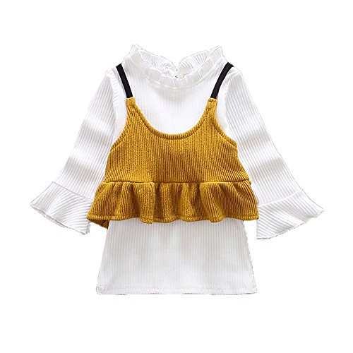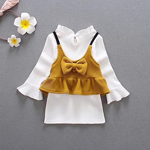 ベビー服 女の子ワンピース 子供服 Pojour 冬秋 防寒 ニットベスト+ワンピース 可愛いリボン付き 長袖 オシャレ 綿 通園 発表会 旅行 記念日 プレゼント 白