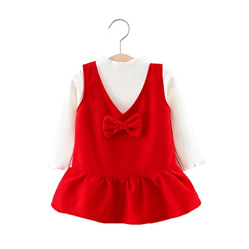 ベビー服 女の子ワンピース 子供服 Pojour 冬秋 防寒 リボン付きドレス 可愛い2セットドレス オシャレ 綿 通園 発表会 旅行 記念日 プレゼント 赤