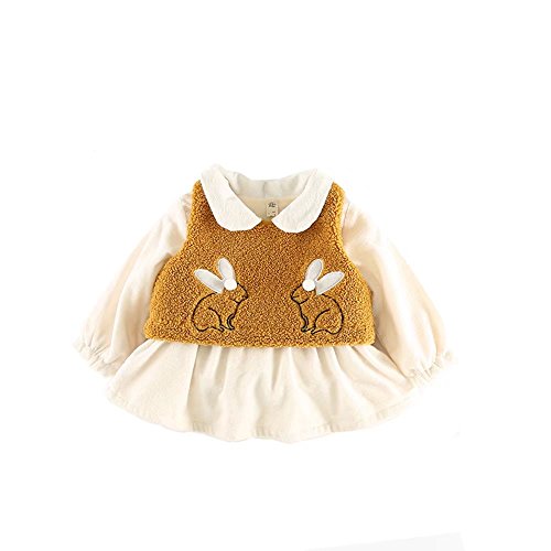 ベビー服 女の子ワンピース 子供服 Pojour 冬秋 防寒 ウサギワンピース 可愛いベスト付き キッズ服 新生児 赤ちゃん 長袖 オシャレ 綿 通園 発表会 旅行 記念日 プレゼント 白
