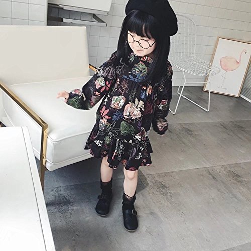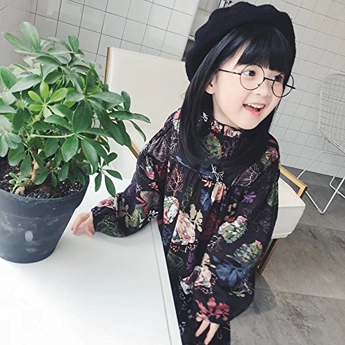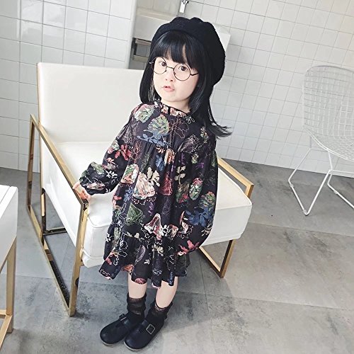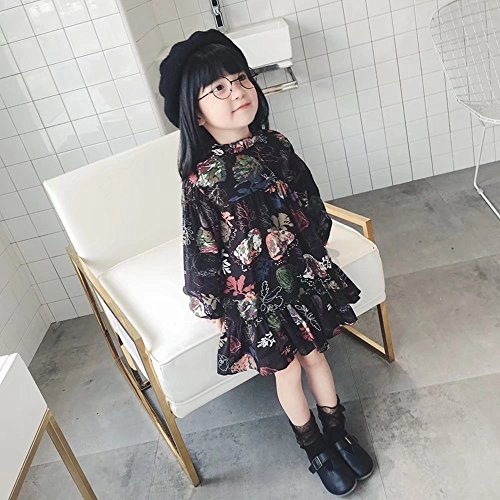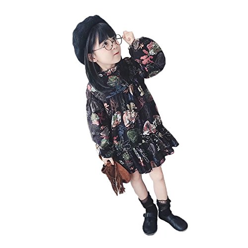 ベビー服 女の子ワンピース 子供服 Pojour 可愛い小花柄ワンピース レトロ混合色スカート 長袖ドレス オシャレ 秋 綿 通園 発表会 旅行 記念日 プレゼント