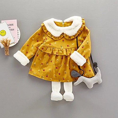 Pojour ベビー服 子供服 女の子 ワンピース 長袖ドレス 秋冬 裏毛 厚手 可愛い小柄ワンピース オシャレ 保温 エアコン室 防寒対策