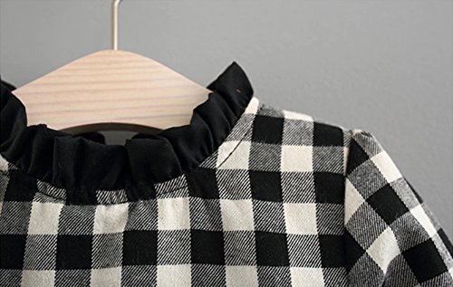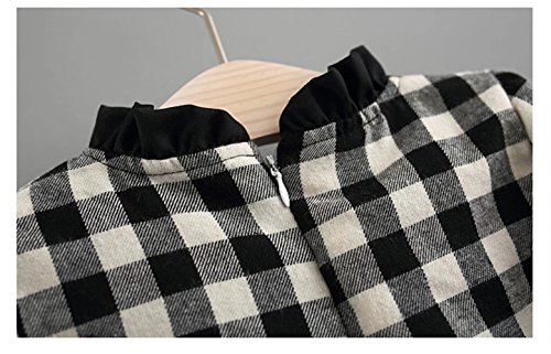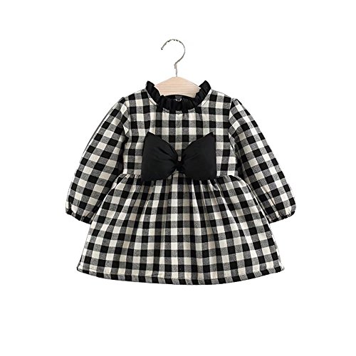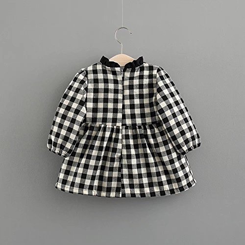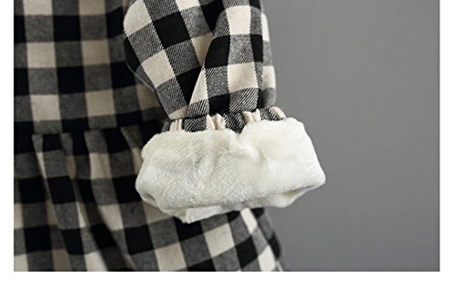 Pojour ベビー服 子供服 女の子 ワンピース 長袖ドレス 秋冬 裏毛 厚手 可愛いグリッドドレス オシャレ 保温 エアコン室 防寒対策
