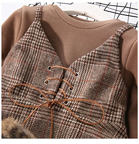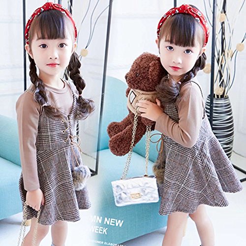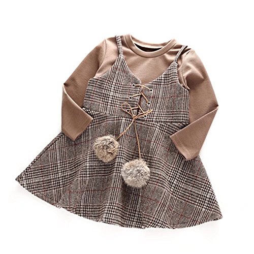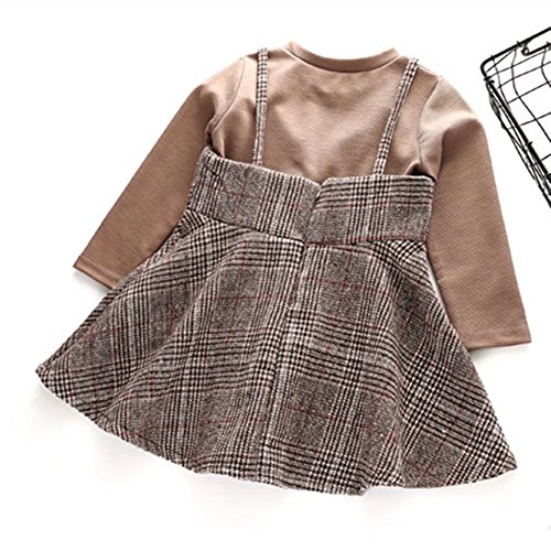 Pojour ベビー服 子供服 女の子Tシャツ+ワンピース 長袖つりドレス 厚手 裏毛 冬秋 可愛いワンピース オシャレ 保温 エアコン室 防寒対策