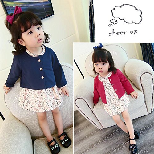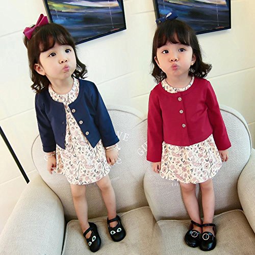 Pojour 子供ドレス 女の子ワンピース キッズ小柄ドレス 女児 ガールズコート付きワンピース 2セット 春秋 演奏会 発表会 結婚式 入園式