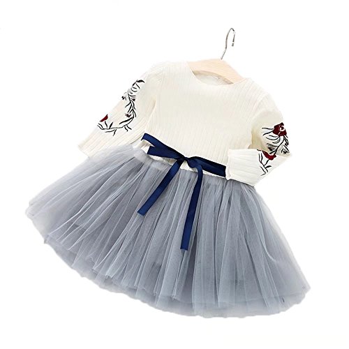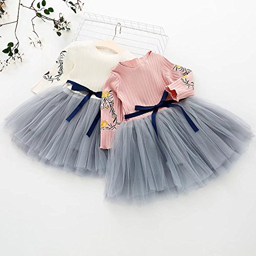 Pojour ベビー服 女の子ワンピース 春秋 子供ワンピース キッズ可愛い刺繍ニットスカート 女児プレゼント ガールズスカート お出かけ 通園 通学 出産祝い