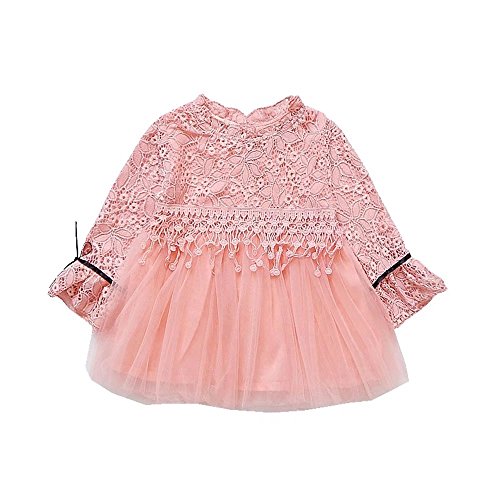 Pojour ベビー服 女の子ワンピース 春秋 子供可愛いレースチュールワンピース キッズドレス 長袖ドレス 女児プレゼント ガールズスカート お出かけ 綿 通園 通学 出産祝い