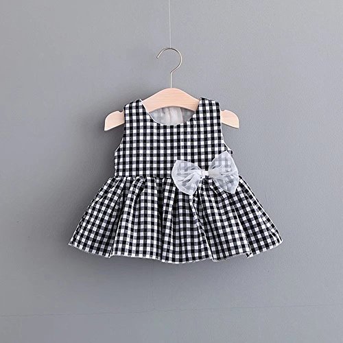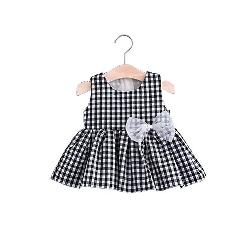 Pojour ベビーワンピース 夏 女の子キャミソール かわいい蝶結び付きグリッドワンピース キッズ ガールズ 袖なし 赤ちゃん 幼児 子供服 キッズ服 綿 70-100CM