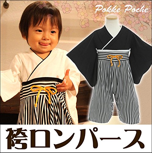 (ポッケポッシュ)Pokke Poche 当店オリジナル はかま風ベビー用ロンパース【248503】 90cm ブラック