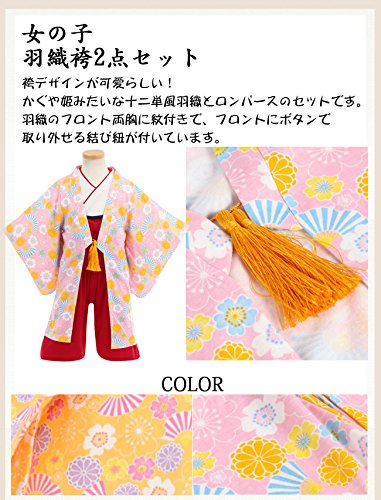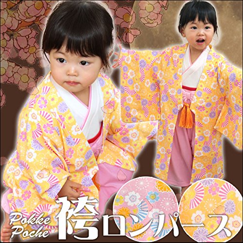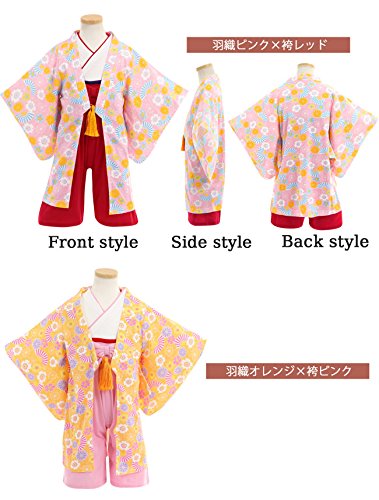 (ポッケポッシュ)Pokke Poche 女の子用羽織付き袴ロンパース【288508】 90cm 羽織オレンジ×袴ピンク