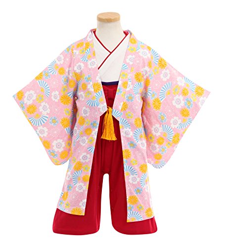 (ポッケポッシュ)Pokke Poche 女の子用羽織付き袴ロンパース【288508】 90cm 羽織ピンク×袴レッド