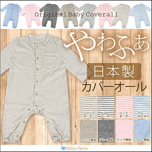 (ポッケポッシュ)Pokke Poche 日本製 ベビー60-90cm ナチュラル長袖カバーオール【2016-0010】 60cm グレーボーダー