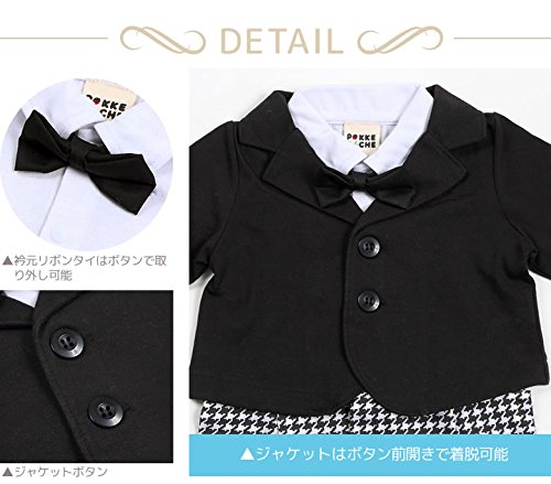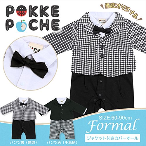 (ポッケポッシュ)Pokke Poche 当店オリジナル ベビー ジャケット付きカバーオール【tpp-002】60cm パンツ灰(千鳥柄)