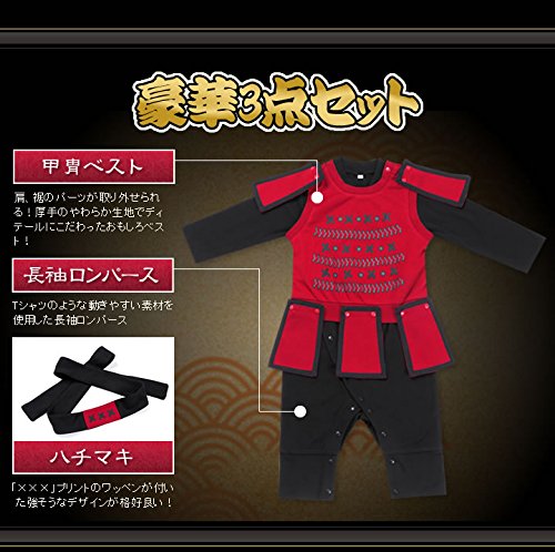甲冑ベスト、長袖ロンパース、ハチマキの3点セット♪