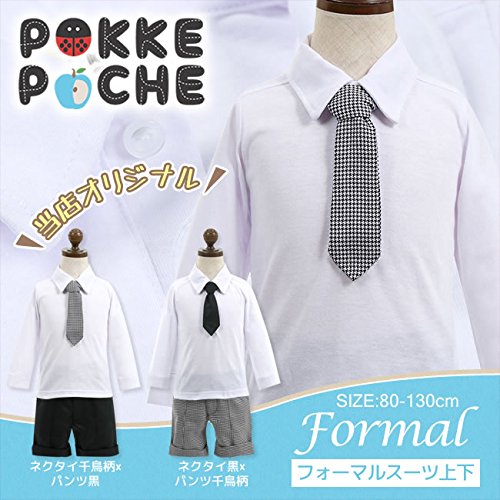 (ポッケポッシュ)Pokke Poche 当店オリジナル フォーマルスーツ上下【tpp-004】110cm ネクタイ黒×パンツ千鳥柄