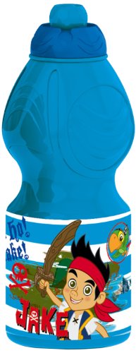 Jake and the neverland pirates water bottle;Official merchandise;Has a unique pull 'n' sip, which provides a more hygienic way to drink;Colour: Blue;Size: 18cm x 6.4cm x 6.4cm
